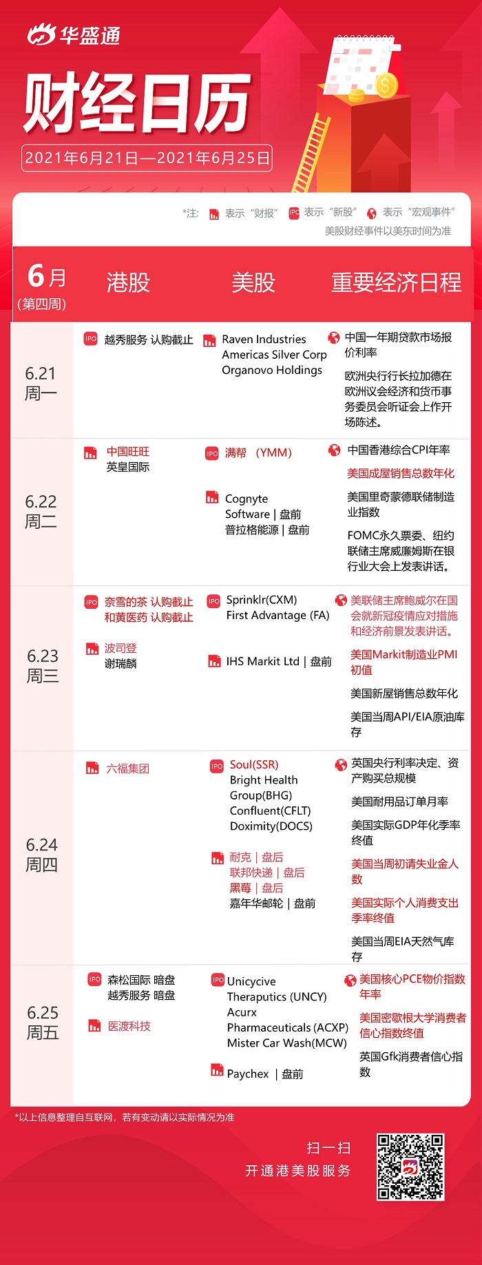 以上即为下周港美股及宏观资讯一览,祝新的一周投资顺利~
