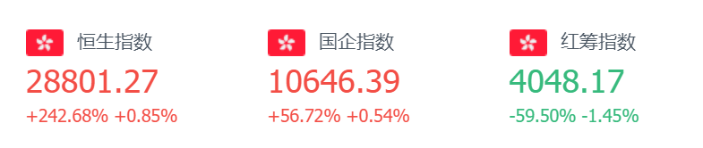 上周五收盘,恒生指数涨242.68点或0.85%,报28801.27点,全日成交额达2055.03亿。国企指数涨0.54%,报10646.39点,红筹指数跌1.45%,报4048.17点。