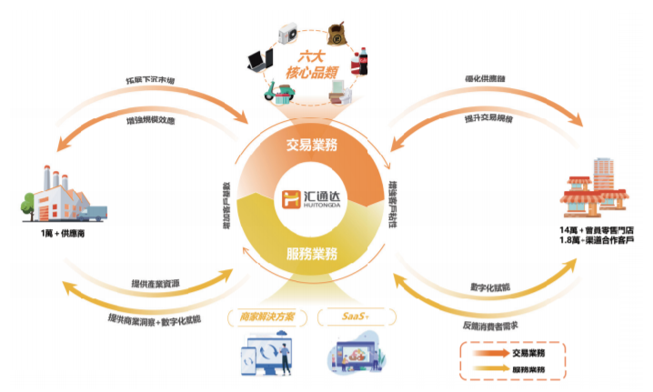 汇通达为一间面向下沉市场零售行业企业客户的交易和服务平台。致力于通过业务模式创新和数字化能力,为零售产业链参与者提供线上线下相结合的供应链解决方案、门店SaaS+服务、商家解决方案等综合服务。