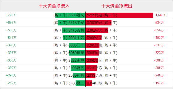 上周五北水南下资金单日资金转为净买入,约11.67亿港元。个股方面,药明生物、吉利单日分别录得约11.56亿、11.5亿港元资金净买入,其他比亚迪股份、舜宇光学、李宁也有较多资金净买出;小米单日录得约8.25亿港元资金净卖出。