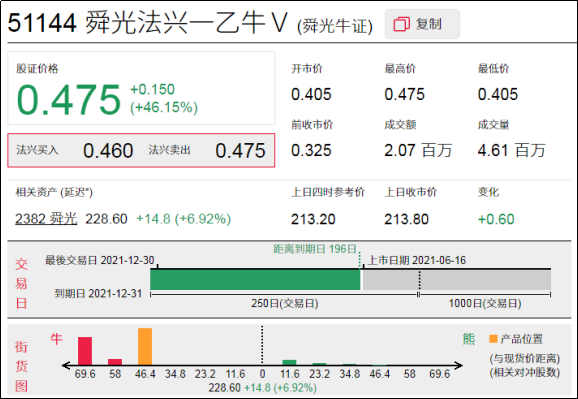 1、强势轮证:舜光法兴—乙牛(51144.HK),上周五大幅上涨45.15%;