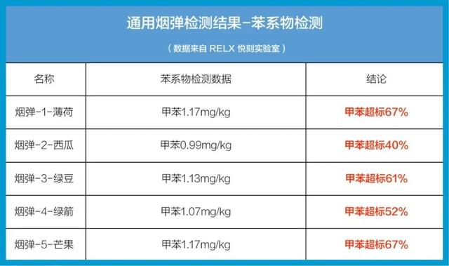 其中,部分通配烟弹中存在苯系物超标的情况。据了解,苯系物是一种广泛应用于医药、香料、农药等精细化学品生产的化合物,但苯系物超标将对人体中枢系统有麻醉作用,甚至带来中毒风险。