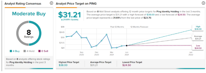 在追踪Ping Identity的分析师中,有4位建议买入、4位建议持有,该股的共识评级为“温和买入”,平均目标价为31.21美元,意味着较当前37%的上升空间。