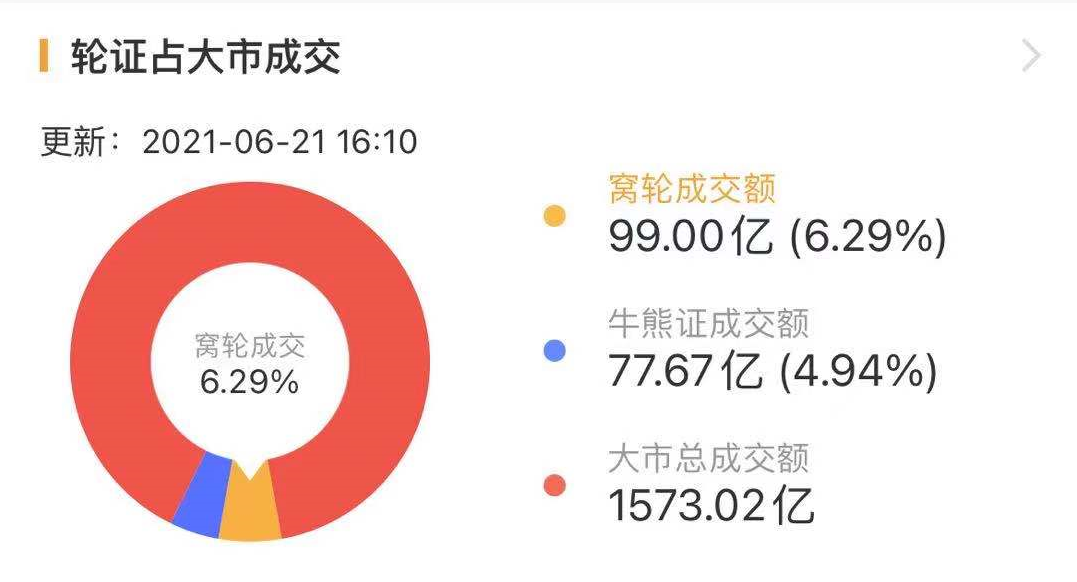 其中,窝轮总成交99.00亿港元,牛熊证总成交77.67亿港元。