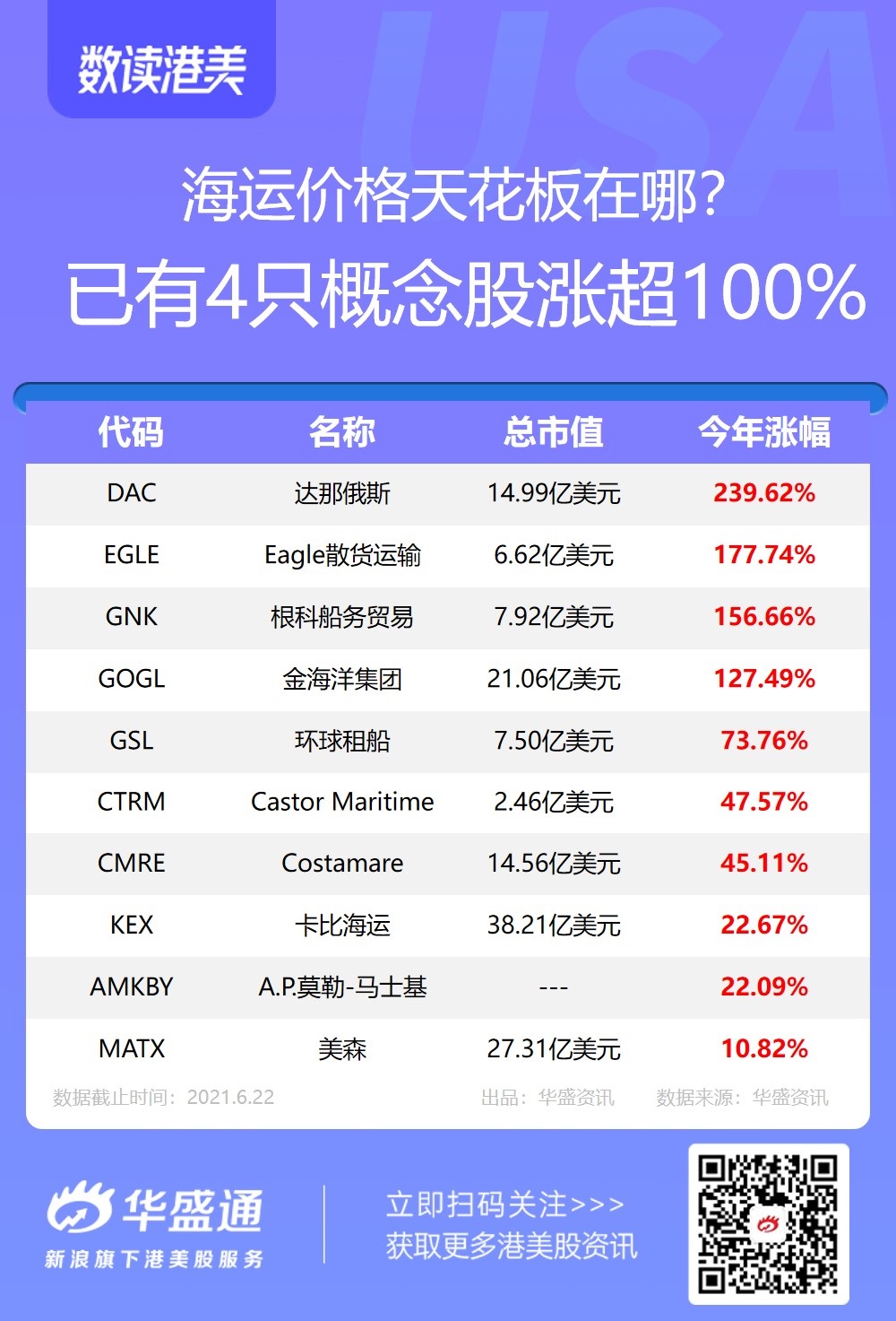 美股方面,相关概念股有达那俄斯、Eagle散货运输、根科船务贸易、金海洋集团、环球租船、Castor Maritime、Costamare、卡比海运、A.P.莫勒-马士基、美森等。