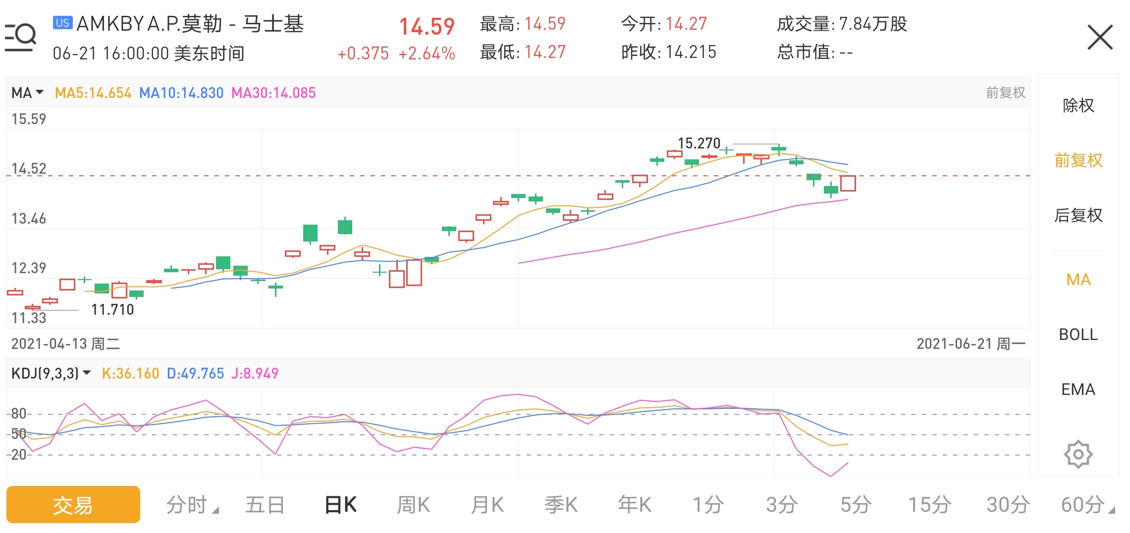 股价表现方面,今年以来马士基股价累计涨超22%,需要注意的是,是属于OTC市场交易的股票。