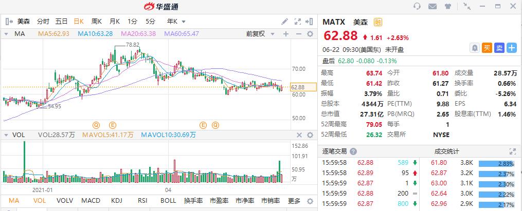 股价表现方面,今年以来美森股价累计涨10.82%。