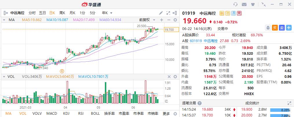 股价表现方面,今年以来中远海控股价累计涨超110%,并且近一年来该公司股价累计涨超700%。