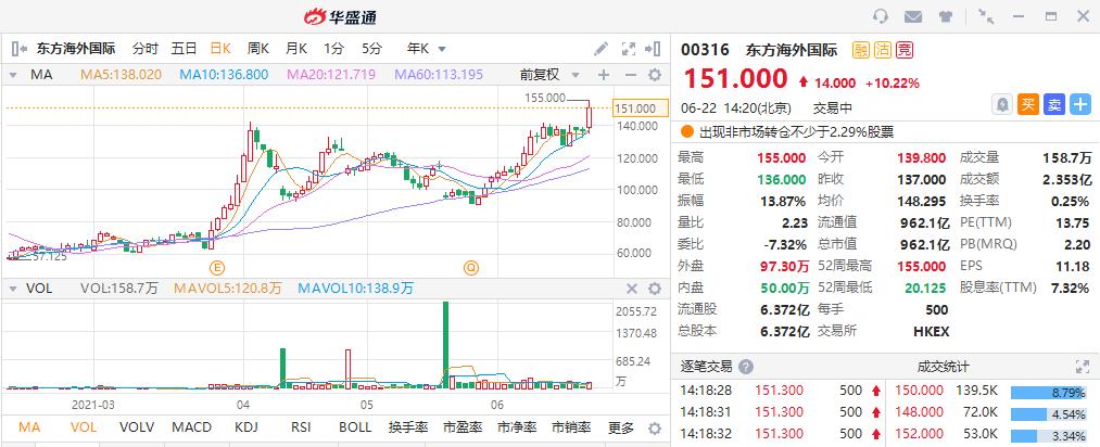 股价表现方面,今年以来东方海外国际股价累计涨超125%,而2020年已累计涨超170%。