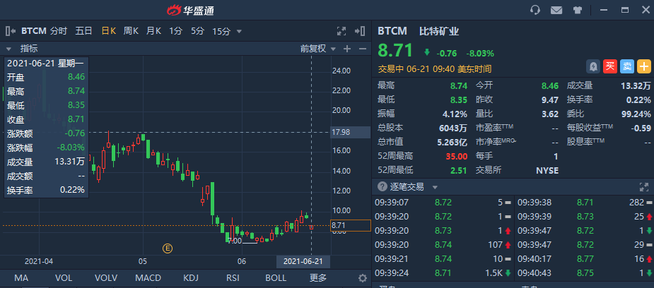 华盛资讯6月21日讯,美股区块链概念股全线走低。