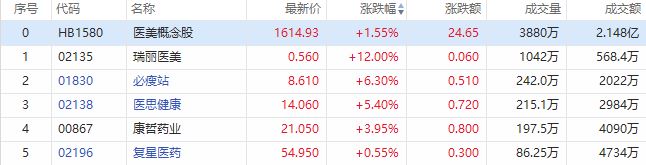 华盛资讯6月22日消息,医美板块今日普涨,截止发稿,瑞丽医美上涨12%;必瘦站上涨6.3%;医思健康上涨5.4%;康哲药业上涨3.95%;复星医药上涨0.55%。