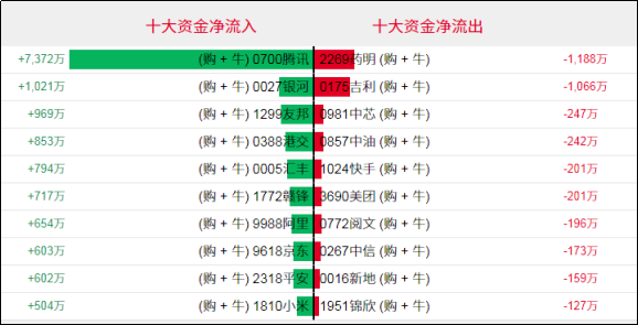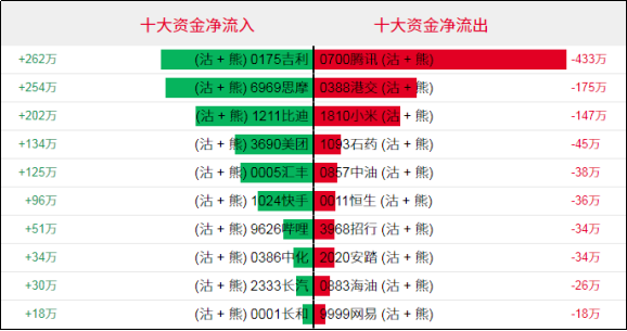淡仓(认沽证及熊证)方面,周一吉利、思摩尔国际相关淡仓单日分别录得约262万、254万港元资金净流入,腾讯相关淡仓单日录得约433万港元资金净流出。
