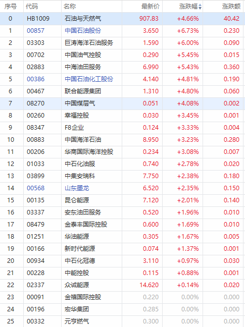 华盛资讯6月22日消息,港股石油股今日持续上扬,截止发稿,中国石油股份涨近7%;巨涛海洋石油服务涨超6%;中国油气控股、中国油田服务涨超5%;中国石油化工股份涨超4%;中国海洋石油涨超3%。