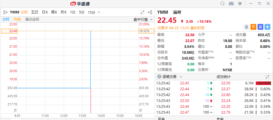 华盛资讯6月23日消息,全球领先的数字货运平台满帮集团(YMM)正式登陆纽交所。
