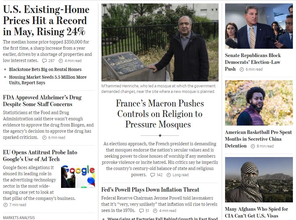 房屋短缺和低利率推动美国今年春季的中位数房价上涨两位数字百分比,在5月首次突破了35万美元。美国全国地产经纪商协会(NAR)周二表示,成屋价格大幅上涨使更多买家持观望态度,导致成屋销售连续第四个月下降。美国5月成屋销售较4月下滑0.9%,经季节性调整折合成年率为580万套。5月成屋销售同比增长了44.6%,去年5月新冠相关的封锁措施导致房屋销售下降。NAR表示,5月成屋中位数价格同比上涨23.6%,至35.03万美元,为纪录高点。