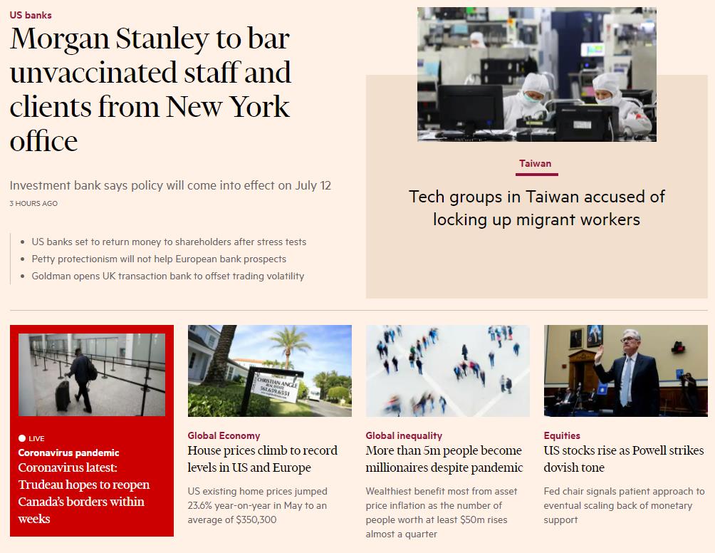 首席人力资源官曼德尔·克劳利签署的备忘录说:“从 7 月 12 日开始,所有员工、临时员工、客户和访客都必须证明已接种疫苗才能进入纽约市和威彻斯特的摩根士丹利大楼。”在那一天之后,那些没有证明完全接种疫苗的人将无法进入大楼,克劳利写道,并补充说“绝大多数员工”已经报告说他们接受了注射。一位女发言人说,该政策旨在加快使办公室恢复正常的过程。