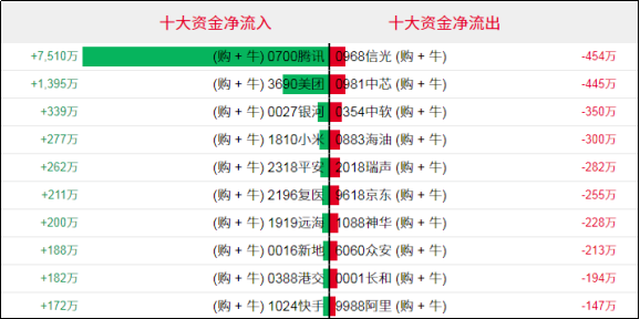 好仓(认购证及牛证)方面,周二腾讯、美团相关好仓单日分别录得约7510万、1395万港元资金净流入;药明生物、信义光能、中芯国际相关好仓单日分别录得约454万、445万港元资金净流出。