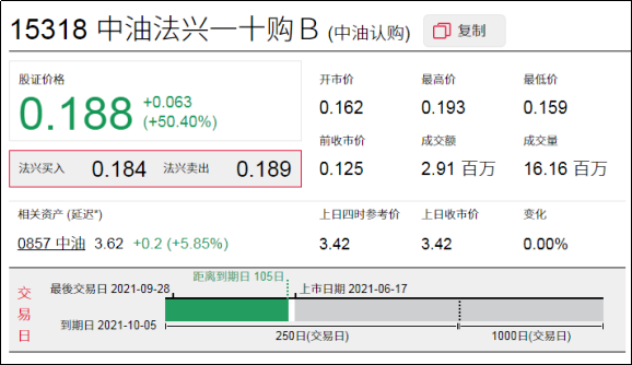 1、强势轮证:中油法兴—十购(15318.HK),周一大幅上涨50.4%;