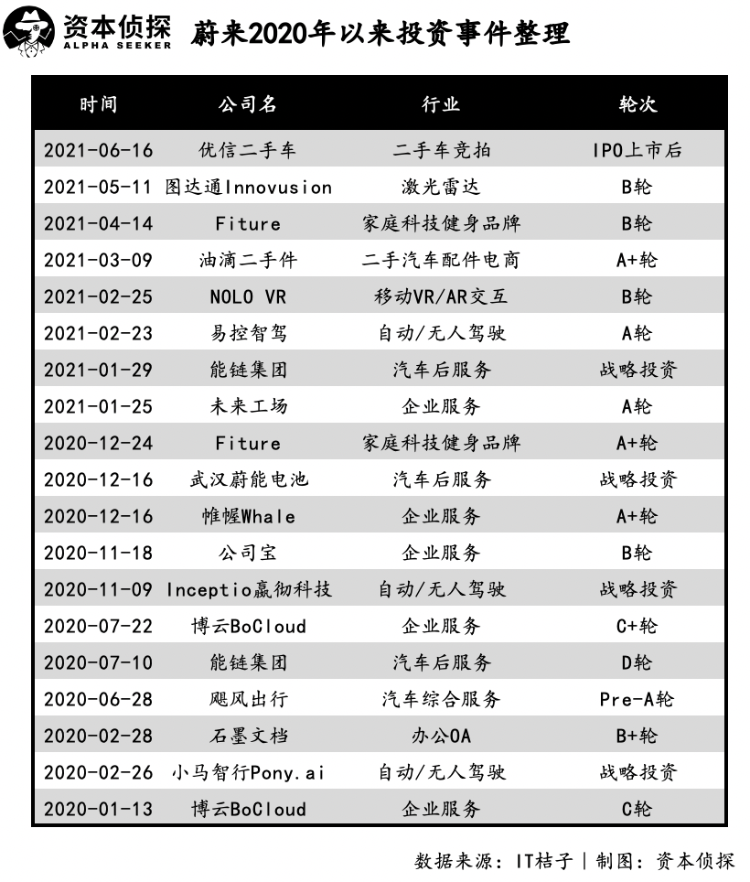 此外,蔚来的对外投资不局限在大汽车领域,其也会关注家庭健身、企业服务等大风口。