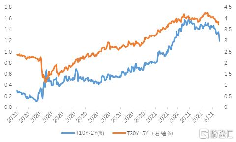 图7:美债利率曲线平坦化 (10-2年利率,30年-5年)