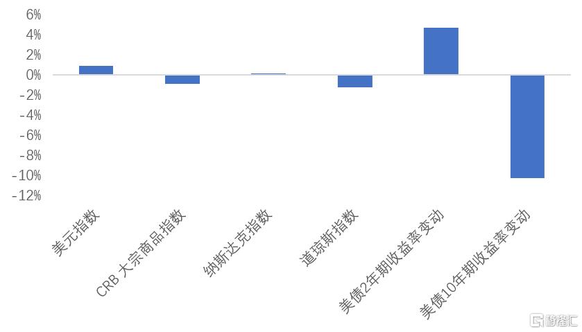 短期美元流动性边际收紧的情况下,风险情绪回落,美元指数反弹,大宗商品价格下跌。