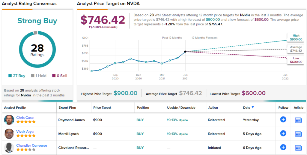 从华尔街整体来看,27位分析师建议买入,一位建议持有。共识评级为“强烈买入”,平均目标价为746.42美元。这意味着其股价较当前水平存在着1.2%的下行空间。另外,分析师给出最高预测价为900美元,最低则为600美元。在未来几个月里,分析师们是否会下调他们的评级或提高目标价格,这将是一个有趣的现象。