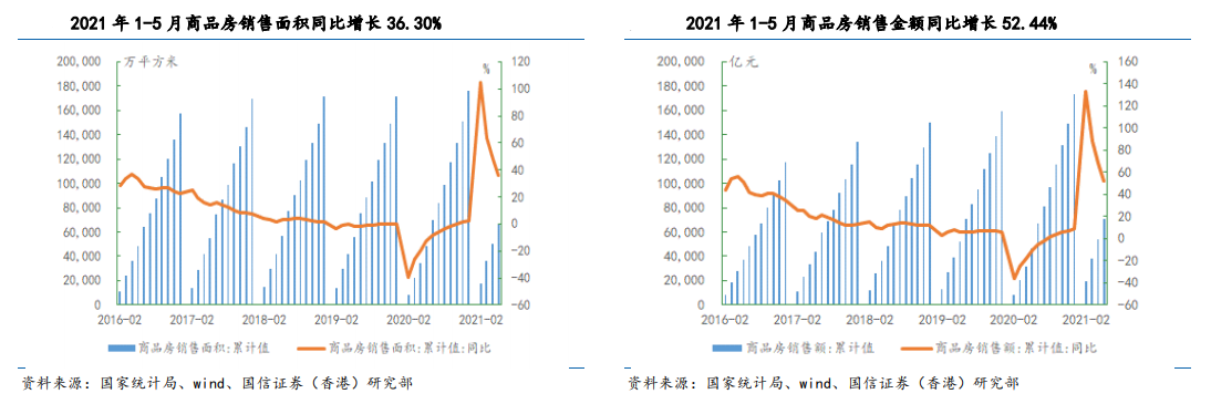 尽管遭遇了更为严格的监管和调控,6月以来销售数据有一定走软,但整体环境并未就此转恶。今年1-5月,全国商品房销售金额、面积仍为历史同期最高水平,达到7.05万亿元和6.64亿平方米,同比仍增长52.4%和36.3%。