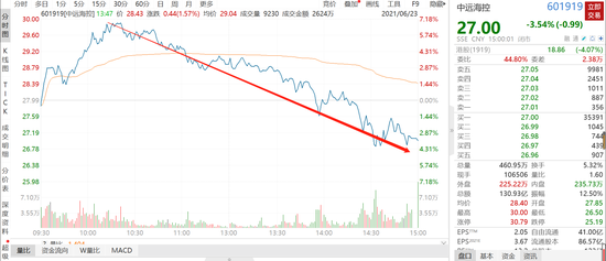 今日尾盘,无论是A股还是港股,都出现了前期涨幅过大股票急速跳水行情,超7倍大牛股中远海控A股在触及30元后急速跳水,从涨7%到午后倒跌3.54%;中远海控H股上演了同样的走势,从涨6.8%到跌4.1%。