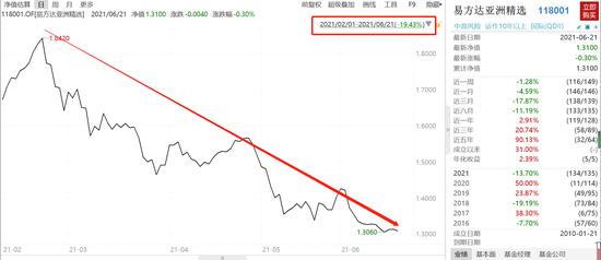 根据最新数据,2月1日以来,易方达亚洲精选从净值1.842跌到了目前的1.306,区间跌幅逼近20%。据市场数据,近3个月,易方达亚洲精选股票(QDII)在同类基金产品中,排名倒数第二;近6个月,排名倒数第三。