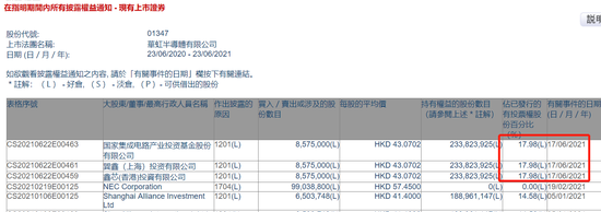 据港交所披露文件:6月17日,国家集成电路基金以每股43.07港元均价出售857.5万股华虹半导体(01347.HK)股份,套现3.69亿港元,持股比例从18.64%下降至17.89%。