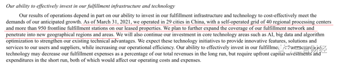 招股书中,叮咚买菜透露公司仍然计划持续在全国更多地区推广其前置仓模式。同时,招股书中也坦诚短期内,公司的扩张会对成本和支出造成影响,需要资本投资支持。
