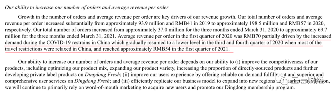 第三,2021年第一季度,叮咚买菜总订单量达到6970万单。