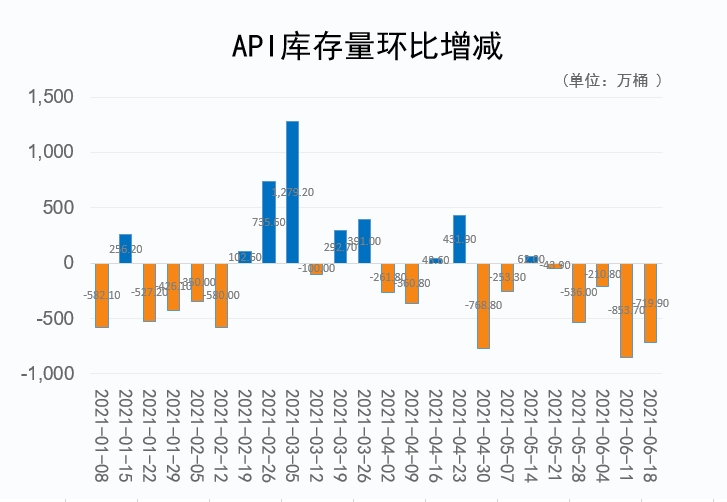 周三,美油7月合约站上73美元/桶,续刷2018年10月以来新高。国际油价连创阶段新高,市场需求不断增强,库存持续大跌也是一大推手。数据显示,截至6月18日当周,美国原油库存骤降719.9万桶,汽油库存增加96万桶,馏分油库存增加99万桶;当周API库欣原油库存减少255万桶。