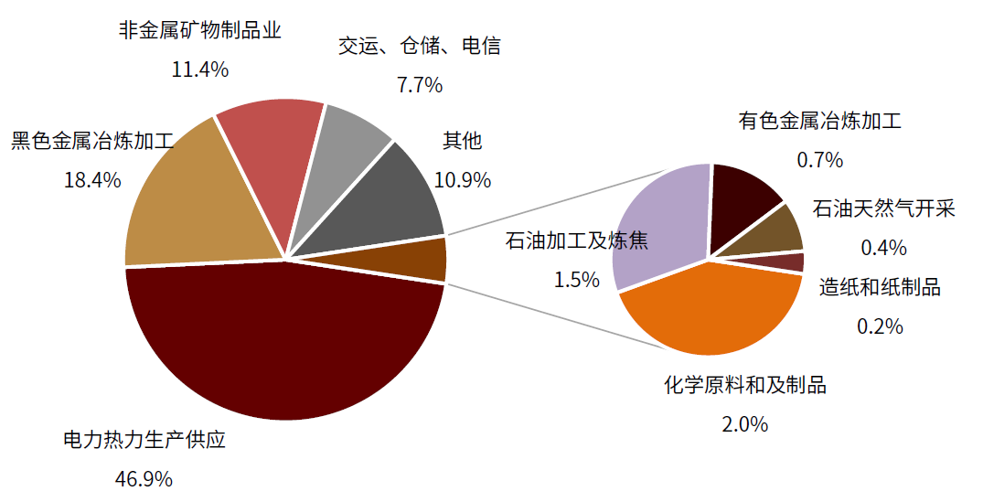 从需求端看,CCER需求量主要由碳排放配额总量及CCER可抵消碳排放配额比例两个因素决定。当前仅发电企业纳入碳交易市场,随着碳交易市场的日渐成熟和逐步完善,我们预计未来碳交易市场将会覆盖更多的行业。根据中国碳核算数据库数据,电力与热力部门2018年碳排放量高达4510 Mt,占总碳排放量比重约47%,而其余与八大高耗能行业(石化、化工、建材、钢铁、有色、造纸、电力和民航)相关的部门也均有较高的排放量。我们认为“十四五”期间,八大高耗能行业有望陆续纳入全国碳市场覆盖,预计碳交易需求将进一步延伸。