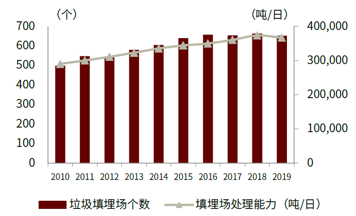 目前填埋场沼气发电覆盖率较低,未来增长空间充足。根据《2019年城乡建设统计年鉴》及《2020中国生物质发电产业发展报告》,截至2019年,全国城市和县城共有垃圾卫生填埋场1885座,合计处置规模54.3万吨/日,同期仅216个沼气发电项目装机并网,累计装机容量79万千瓦,产业覆盖率不足12%,填埋气发电业务仍具有较大的市场空间。(县城1233座,处置规模合计17.6万吨/日,城市652座,处置规模合计36.7万吨/日)