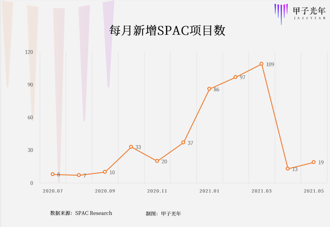 新的规则下,必然会对原有的生态造成剧烈冲击。据SPAC Research数据,4月SPAC交易仅有13宗,5月仅有19宗,6月几乎停滞不前。