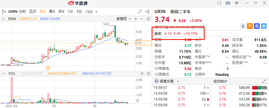 华盛资讯6月24日讯,美股盘前,截至发稿,优信二手车(UXIN)盘前涨超10%,商务部将推动取消对二手车交易不合理限制。