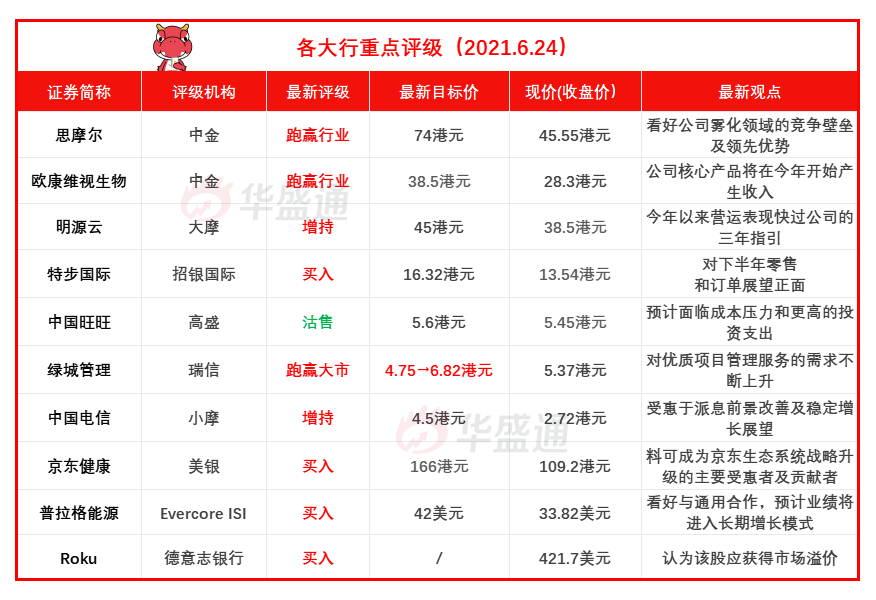 富瑞发表研究报告指,预期内地的物业管理公司整体将录得强劲的中期业绩,盈利平均增长超过60%,并预计7月中将出现另一波的盈喜,建议投资者在潜在盈喜前增持相关股份。富瑞维持对高品质、高增长、高盈利的参与者看法,继续看好碧桂园服务和融创服务在低及高端住宅领域的强大执行力和领先地位,并维持合景悠活及新城悦服务为该行重新评级的潜在中型企业。