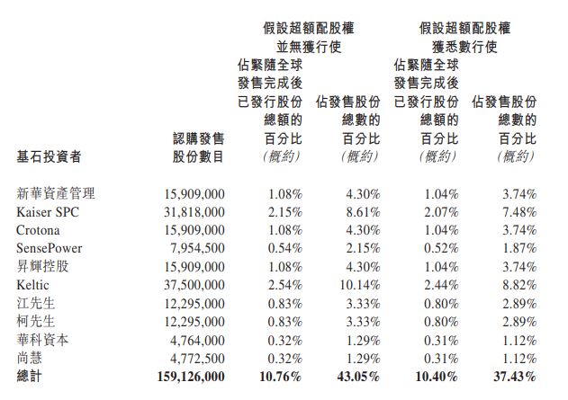 根据国际配售初步提呈发售的国际配售股份获得适度超额认购,相当于国际配售项下初步可供认购2.25亿股发售股份总数约2.36倍。国际配售项下的发售股份最终数目为1.75亿股发售股份,相当于全球发售(于任何超额配股权获行使前)项下初步可供认购的发售股份总数目的70%。