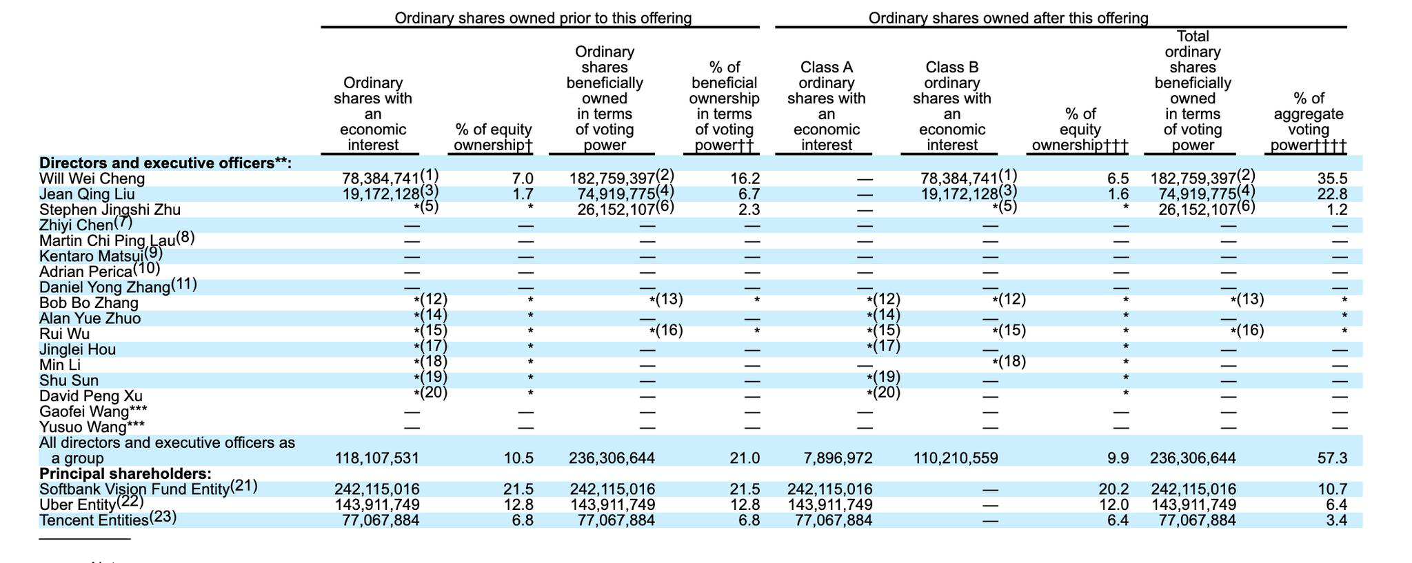 软银委派的董事会成员Kentaro Matsui仍在此次披露的董事名单之中,但按照此前协定,在滴滴正式上市之后,软银将退出滴滴董事会。财务投资人博裕资本董事总经理Zhiyi Chen(陈峙屹)在正式上市之后也将辞任董事。