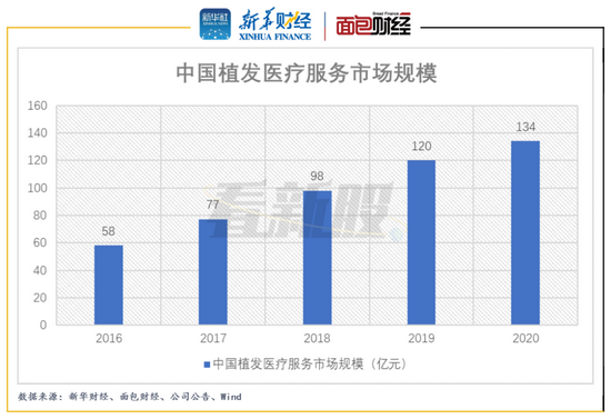 毛发医疗服务市场具体可分为植发医疗服务和医疗养固服务两部分,前者为一种治疗脱发的手术治疗,后者融合医疗器械及药物等多种非手术治疗方式。数据显示,2020年国内植发医疗服务、医疗养固服务的市场规模分别为134亿元和50亿元。