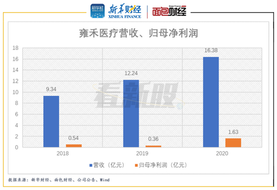 2018年至2020年,雍禾医疗营业收入从9.34亿元上升至16.38亿元、归母净利润从0.54亿元上升至1.63亿元。