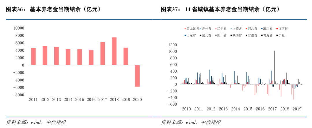 商业养老保险市场的进一步开发迫在眉睫。1)老龄化程度加速提升:2020年,我国65岁以上人口占比达到19.7%,且老龄化程度加速提升:2001-2010年中国老龄化程度年均增速为0.2%,2011-2020年年均增速为0.5%,2020年增速达到0.9%。根据联合国对人口老龄化的定义,我国已进入深度老龄化阶段。2)我国人口金字塔逐渐向纺锤形过渡,老年抚养压力增加。我国的人口结构逐渐由正三角形向纺锤形过渡,呈现出底部收缩、上部变宽的形态。随着劳动人口逐渐步入老龄、进入成年的劳动人口比例下降,我国老年抚养比 从1990年的8.4%上升到2020年的19.7%。人口老龄化加剧,带来了养老金支出的不断上升,而老年抚养比的提高减少了养老金的收入,我国养老的财政压力提升。3)全国养老金缺口显现,多省市缺口扩大。基本养老金当期结余呈现下滑趋势,2020年全国性缺口首现。除2017、2018年外,近十年我国基本养老保险基金收入增速低于支出增速,且基本养老保险基金当期结余呈现趋势性下滑,养老金缺口较大。2020年,我国基本养老保险基金收入大幅下降,仅为48742亿元,yoy-14.5%,而基本养老保险基金支出不减反增,达到54563亿元,yoy+4.2%。同期,养老基金首次出现当期结余为负的养老金缺口,缺口额达5821亿元。