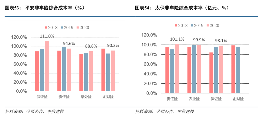 信保业务出清存量、风险将逐步消化。2020年,疫情导致社会信用风险水平提高,存量业务逾期率上升、赔付成本同比增加。上市险企加速收紧融资性信用保证险业务规模,信保风险逐步出清。2020年人保、平安信保业务的综合成本率分别为144.8%、111%;自2021年以来,各险企加强风险管控,调整业务结构,加速出清存量业务风险。