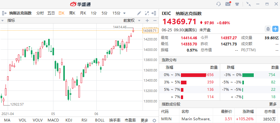 周四标普500指数和纳斯达克综合指数均创下收盘新高,而道琼斯工业平均价格指数跃升逾300点,逼近历史高点。