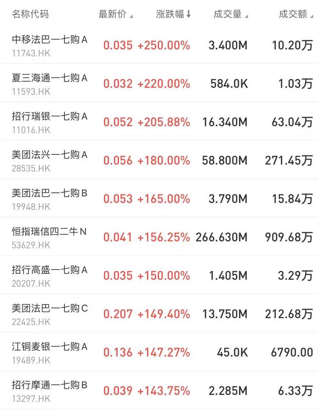 其中,窝轮总成交86.77亿港元,牛熊证总成交76.4亿港元。