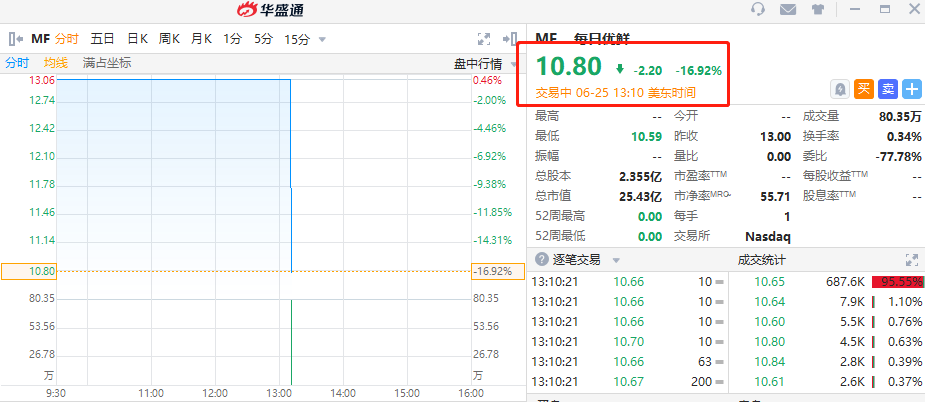 华盛资讯6月26日消息,创新型社区零售企业每日优鲜(MF)正式登陆纳斯达克。