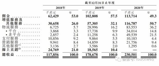 敦煌网的收入主要来自佣金及增值服务。其中,敦煌网2020年来自佣金的收入为1.14亿美元,占比为49.3%,来自增值服务的收入为50.7%。