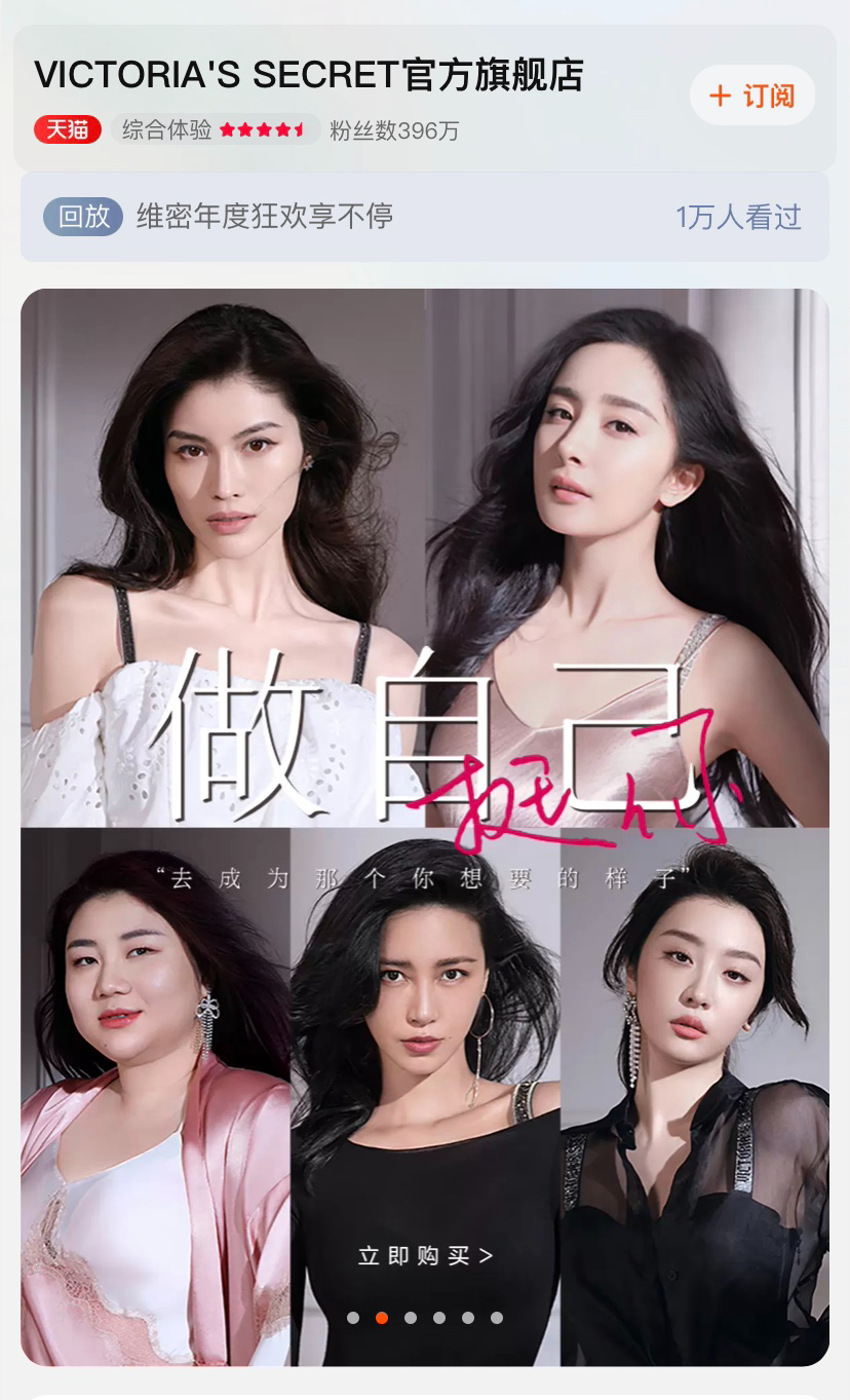 维秘在2017年双十一期间就已开设天猫旗舰店,目前天猫店粉丝已近400万。不过,维秘或许是习惯了在北美以线下门店渠道为主的销售模,在中国并未完全打开局面。与很多时尚领域的对手相比,在线下线上都还需要找到更强的存在感。