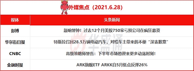 美股上周五收盘涨跌不一。标普500指数创历史新高,并录得2月以来的最大周涨幅。美国5月核心个人消费开支(PCE)价格指数录得近30年来的最大同比增幅,但投资者下注通胀压力上行将是暂时性的,美国经济将继续复苏。